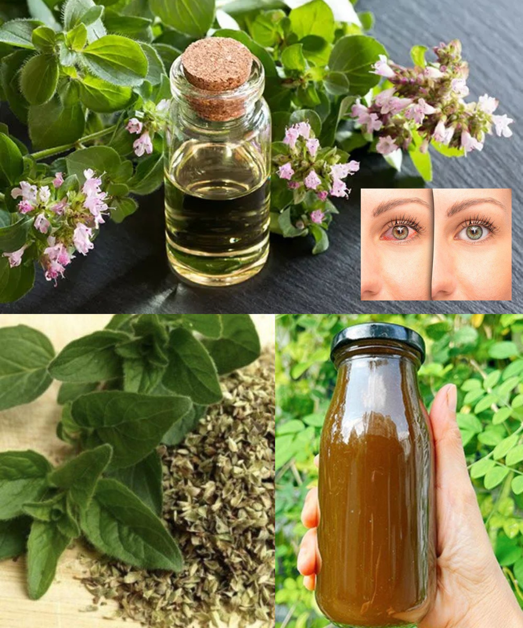 — Aceite de orégano diluido: mezclar 1 gota con 1 cda de aceite de coco u oliva y aplicar suavemente alrededor (nunca dentro) de los ojos para calmar inflamación.