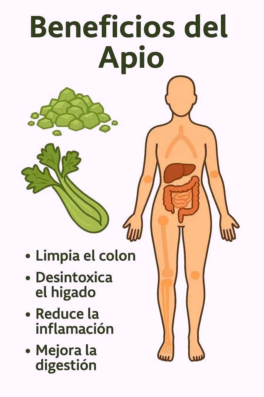 Los flavonoides del apio ayudan a disminuir la inflamación en el cuerpo, lo que lo convierte en un alimento útil para personas con artritis o dolores musculares.
