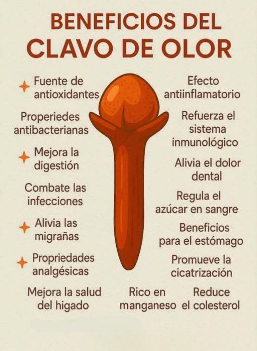El clavo es rico en compuestos antioxidantes que ayudan a combatir los radicales libres, responsables del envejecimiento celular y de diversas enfermedades crónicas.