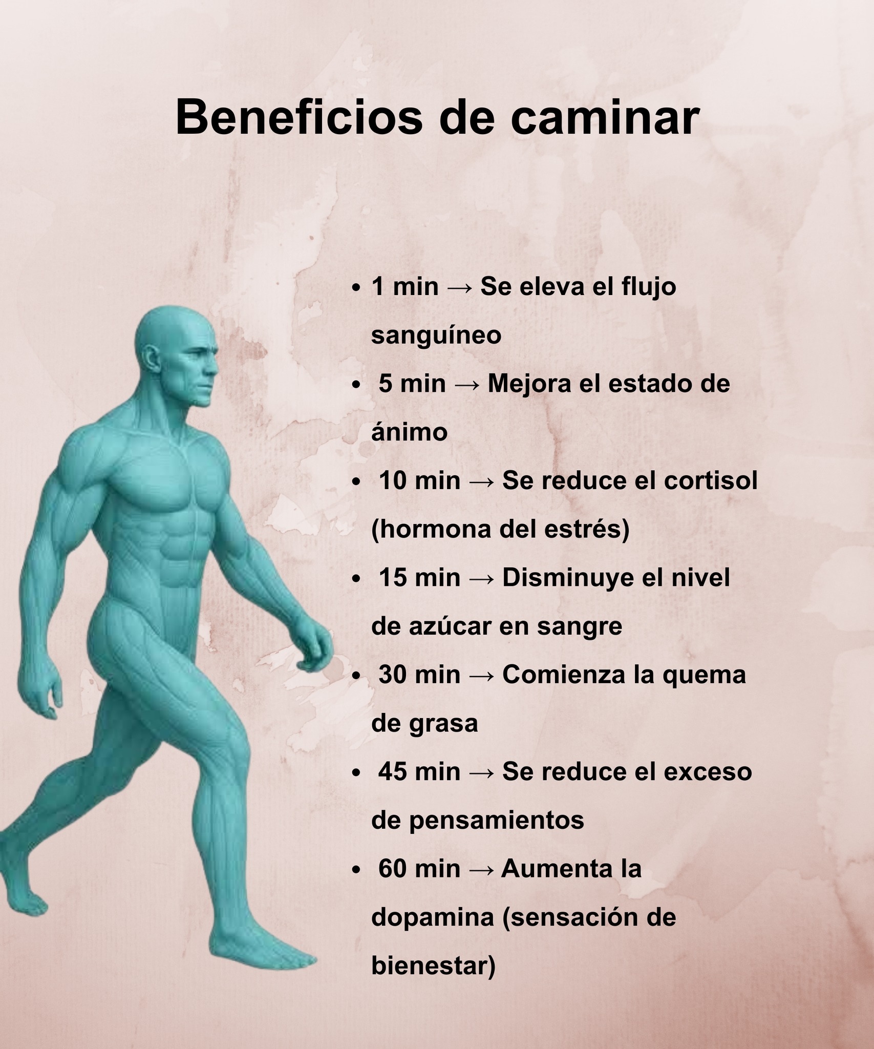 Control de Peso: Ayuda a quemar calorías y a mantener un metabolismo saludable. Caminar a paso rápido de forma regular es una herramienta clave para perder grasa y prevenir la obesidad.