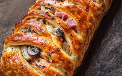 Trenza de Hojaldre Gourmet con Champiñones, Jamón y Queso