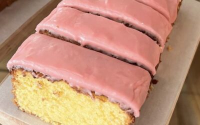 Pastel de vainilla con glaseado rosa (panqué glaseado)