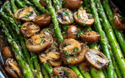 Espárragos y champiñones con ajo y mantequilla en olla de cocción lenta