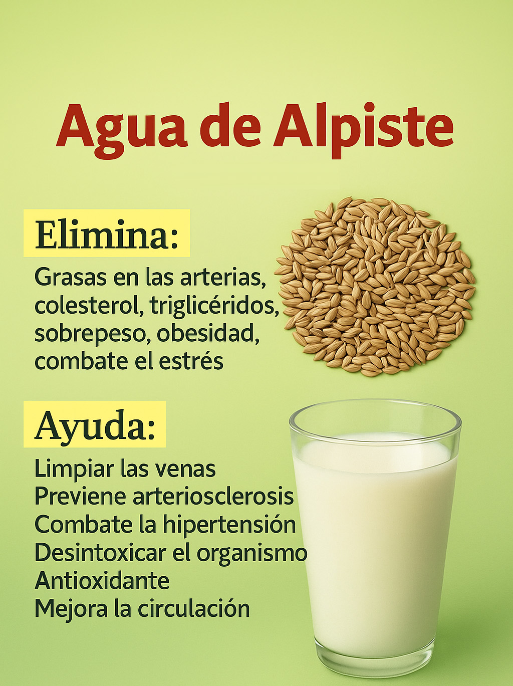 El alpiste, esa semilla dorada de la planta Phalaris canariensis, no es alimento para aves: es un superalimento humano con enzimas lipasas que queman grasa, fibra que atrapa toxinas y minerales que equilibran todo. Imagina tu cuerpo como un motor obstruido: esta agua es el lubricante que lo desatasca, dejando pistones limpios donde la vitalidad acelera sin frenos. Rico en catalasa que neutraliza radicales, potasio que drena retención y proteínas que nutren sin calorías, cada vaso es un tesoro que depura hígado, riñones y intestinos. Siente el pulso: no es suplemento caro; es accesible, puro y transformador, un ritual que te conecta con la tierra mientras cura desde adentro. Este no es un brebaje común; es el puente hacia un tú renovado, donde la hinchazón se disipa, el peso se equilibra y la energía se expande como un amanecer eterno.