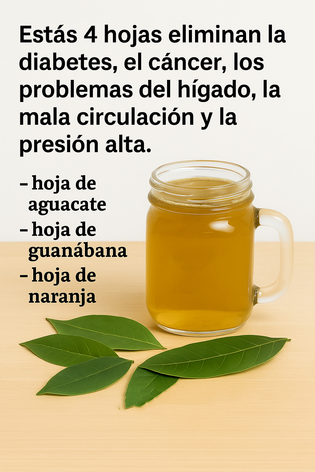 🌿 ¿Imaginas un mundo donde el azúcar en sangre se disuelve como niebla al sol, las células cancerosas huyen aterrorizadas, tu hígado se limpia como un río cristalino, la sangre fluye como un torrente salvaje y la presión arterial se equilibra como un corazón en paz –todo con un té humilde hecho de hojas que crecen en tu patio o mercado? Ese mundo no es sueño: es el legado ancestral que tus abuelos guardaban en silencio, un brebaje explosivo con cuatro hojas de aguacate que barren glucosa, tres de mango que blindan contra cáncer, cuatro de guanábana que desinflaman y matan tumores, cuatro de naranja que calman nervios y circulación, más dos ramitas de canela que encienden el fuego metabólico. Esta infusión no es un remedio suave; es un tsunami natural que ataca raíces de males modernos –diabetes que roba energía, cáncer que acecha en silencio, hígado graso que hincha y asfixia, circulación perezosa que pesa como plomo, presión alta que late con furia– sin una pastilla tóxica, sin médicos caros, solo tradición mexicana que te hace invencible. ¿Sientes esa urgencia en tu sangre, ese llamado a liberarte de cadenas químicas y reclamar una vitalidad que desafía enfermedades? Sigue leyendo, porque este té –una taza matutina por dos semanas– no solo cura: te resucita, te equilibra y te regala un cuerpo que ríe ante el miedo, con energía desbordante, órganos puros y una vida que fluye sin límites. Prepárate para un ritual que te mantendrá hipnotizado, sorbo a sorbo, hasta que sientas el milagro en tus venas –diabetes evaporada, cáncer ahuyentado, hígado rejuvenecido, circulación imparable y presión en armonía perfecta.