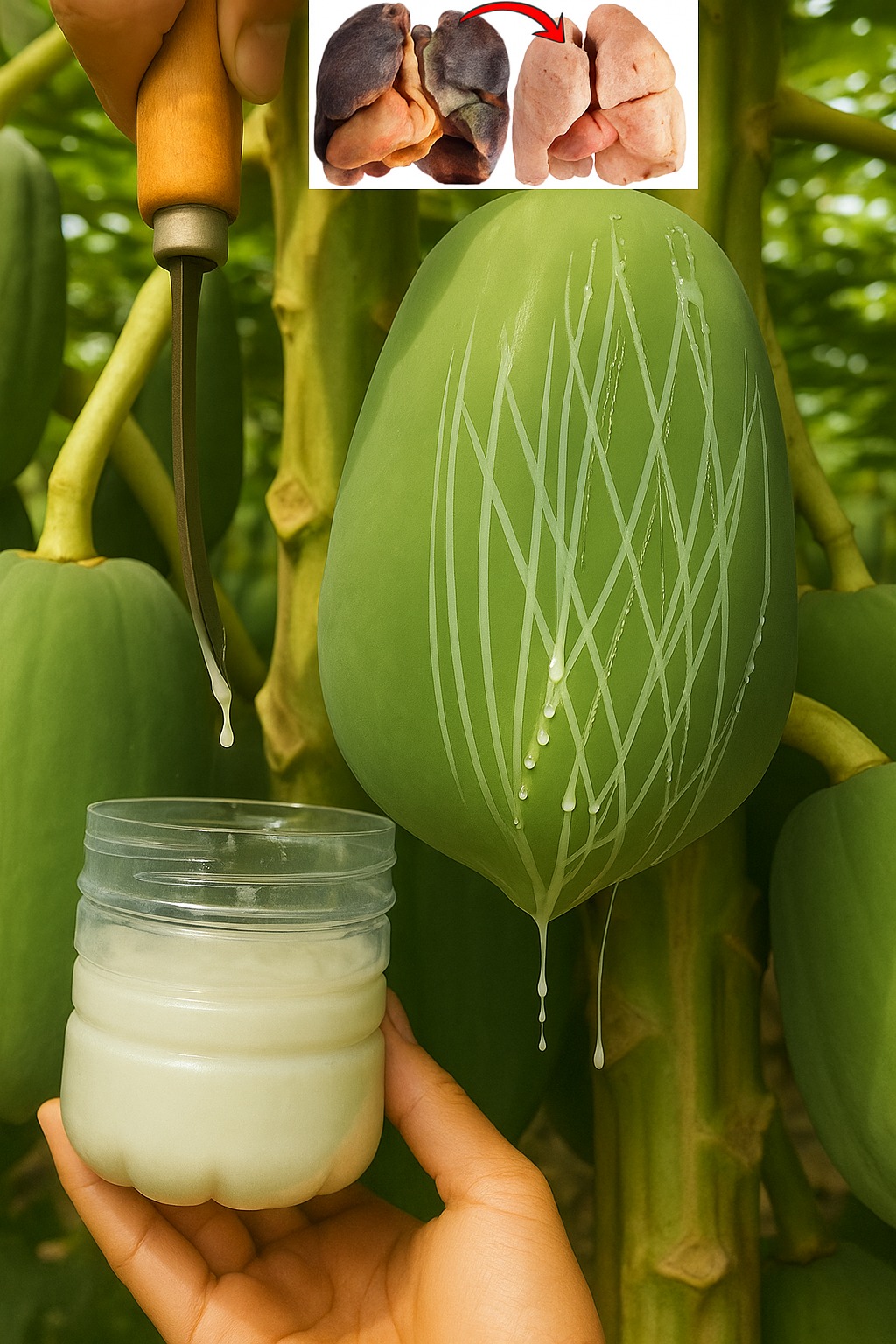 La savia de papaya (también conocida como látex o “leche” de papaya) es el líquido blanco y lechoso que se extrae del fruto inmaduro o verde. Este tesoro natural es una maravilla de la medicina tradicional, no por el fruto maduro en sí, sino por la altísima concentración de una enzima clave: la Papaína.