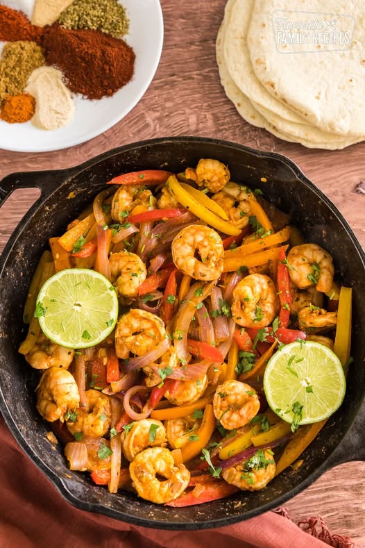 Ya seas amante de los mariscos o simplemente de las fajitas, ¡te encantarán estas fajitas de camarones! Camarones jumbo grandes y jugosos, verduras tiernas y una variedad de especias, todo cocinado y envuelto en una tortilla: ¡no hay nada mejor! Además, te encantará la sencilla lista de ingredientes y la rápida cocción. Los camarones necesitan un poco de tiempo para marinarse, pero una vez listos, todo se cocina en menos de 30 minutos.