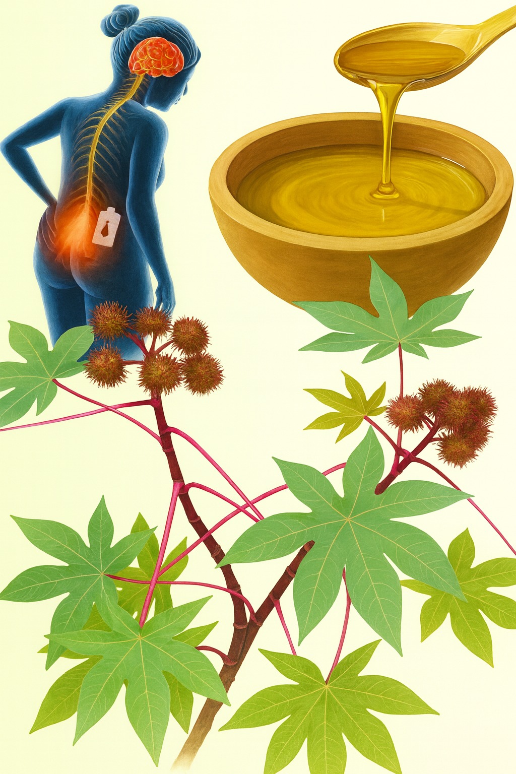 Pero ve más profundo: para quienes luchan contra la artritis o dolores musculares crónicos, estas hojas actúan como un escudo natural, inhibiendo las enzimas que avivan el fuego del dolor y promoviendo la liberación de fluidos estancados. Siente esa conexión emocional: no es solo alivio físico; es la libertad de moverte sin que cada paso sea una negociación con tu cuerpo, de subir escaleras con una sonrisa en lugar de una mueca. Y si el estrés diario te deja con contracturas que aprietan como cadenas, un masaje con infusión de hojas de ricino relaja fibras tensas, recordándote que mereces un cuerpo que fluya con gracia, no que luche contra ti mismo. Cada aplicación es un acto de rebeldía contra el desgaste moderno, un recordatorio de que tu vitalidad no se negocia, se reclama con la ternura de la naturaleza.
