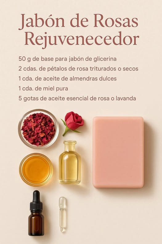 Aquí tienes una receta completa para hacer un Jabón de Rosas Rejuvenecedor artesanal, ideal para hidratar la piel y aprovechar las propiedades antioxidantes y regenerativas de la rosa.