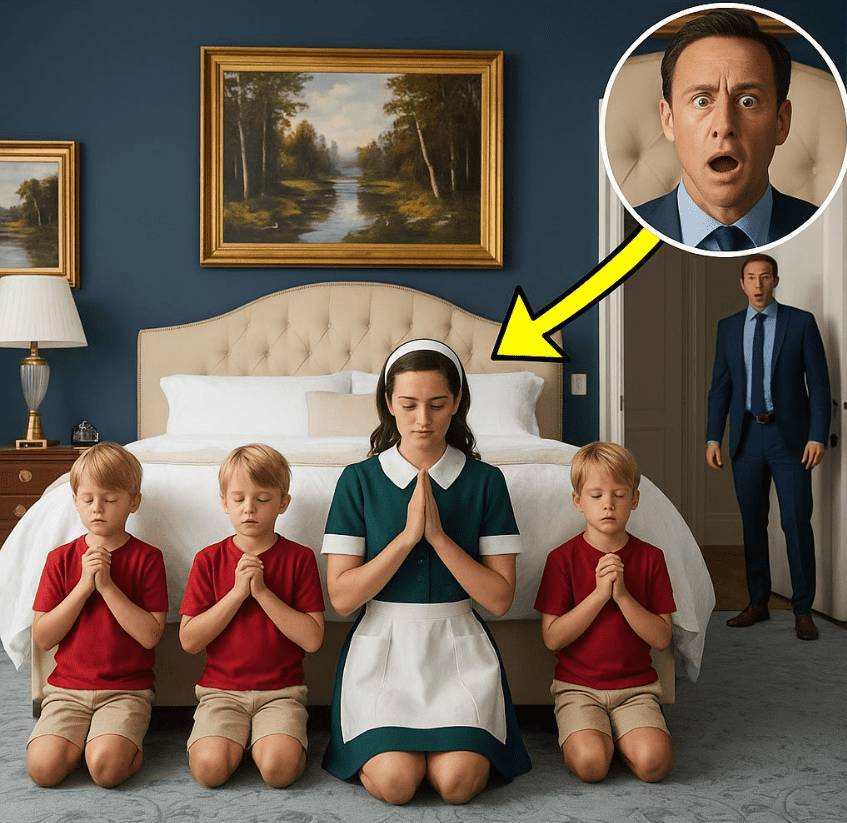 Su uniforme negro con delantal blanco contrastaba con el piso elegante. Pero no fue eso lo que le robó el aire de los pulmones. Fueron sus hijos. Diego, Mateo y Santiago estaban arrodillados junto a ella, sus pequeñas manos entrelazadas frente a sus pechos, sus ojos cerrados con una paz que Sebastián jamás había visto en sus rostros. Gracias por este día. La voz de la niñera era suave, melodiosa. Gracias por la comida que nos alimenta y el techo que nos protege.