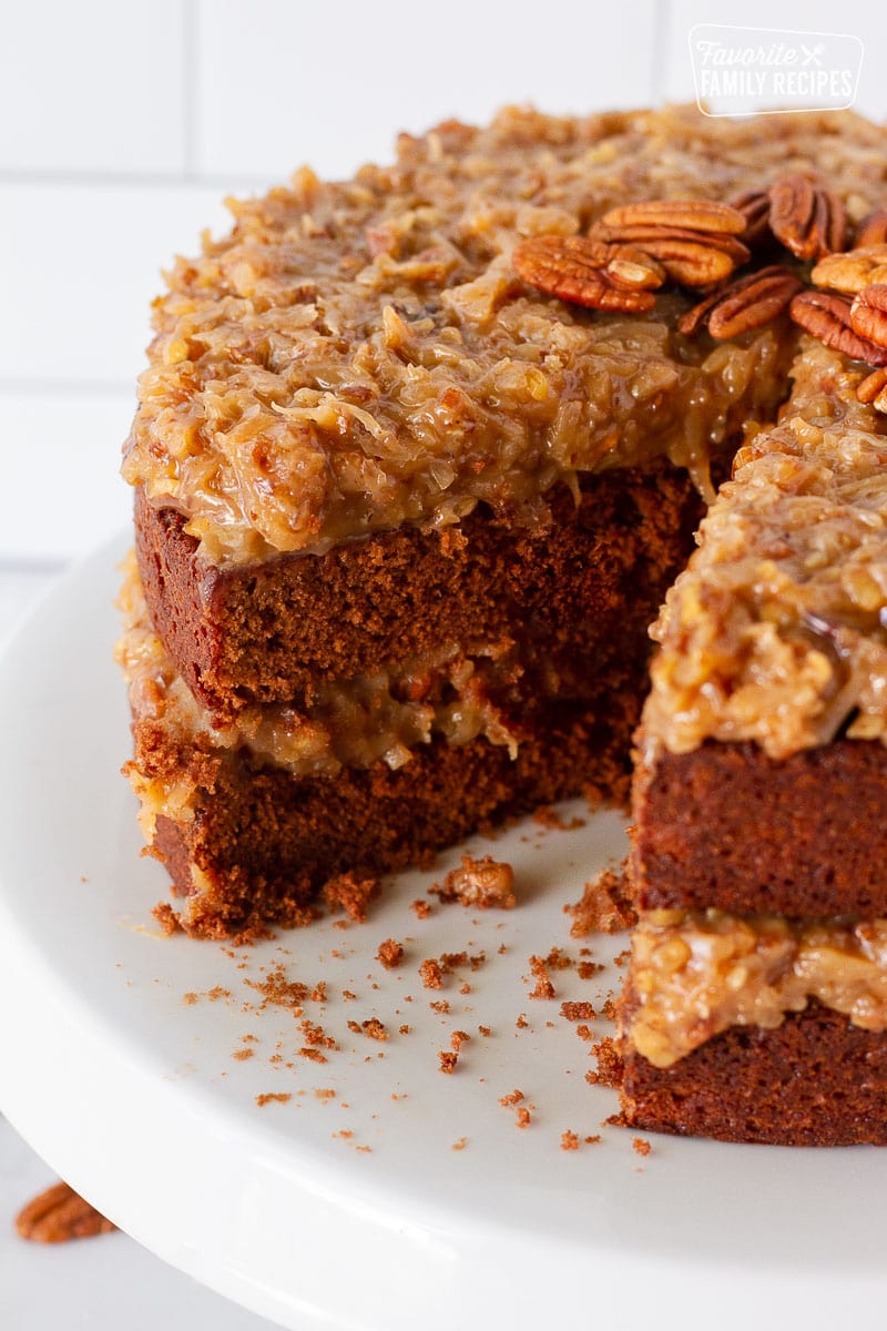 Este pastel de chocolate alemán es uno de los favoritos para cumpleaños, fiestas y otras ocasiones especiales. Aunque se ve y sabe sofisticado, es muy fácil de preparar. Así que, en lugar de usar una mezcla preparada, ¡anímate a preparar esta receta casera de pastel de chocolate alemán con un glaseado único de nueces pecanas y coco que está para chuparse los dedos!