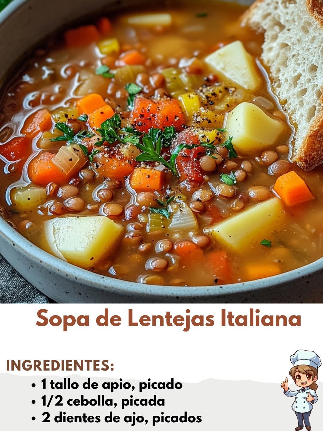 Aquí tienes 3 recetas deliciosas de Sopa de Lentejas al estilo italiano, con distintas variaciones según el gusto y el tiempo que tengas 👇