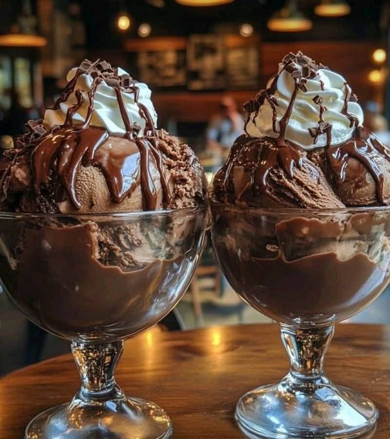 -Coloca 2-3 bolas grandes de helado de chocolate en copas o vasos de cristal.