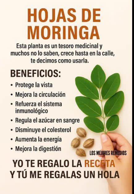La moringa oleifera es una planta rica en vitaminas, minerales, antioxidantes y compuestos antiinflamatorios. Sus hojas son la parte más utilizada, ya que contienen nutrientes esenciales como: